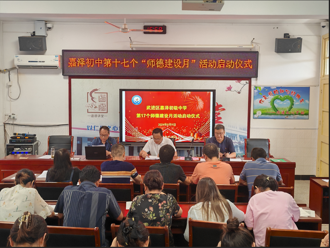 教育发展,教师为本,教师素养,师德为先。师德是学校的灵魂。师德师风是评价教师队伍素质的第一标准。为进一步加强新时代师德师风建设,团结动员全校教师大力弘扬教育家精神,争做四有好老师。9月9日下午,在校道德讲堂,嘉泽初中举行了第十七个“师德建设月”活动启动仪式。